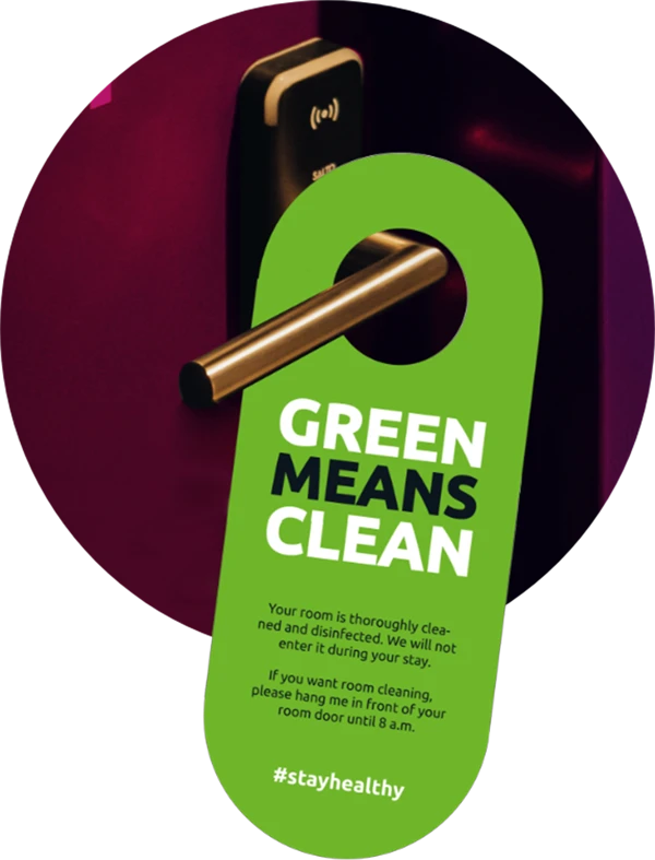 Your contribution to save resources and protect the environment. Laundry cleaning and detergents pollute the environment and water is a precious resource. If you do nothing, you do good for the environment. Of course, we offer you your usual cleaning service – hang the green card in front of the door the night before.